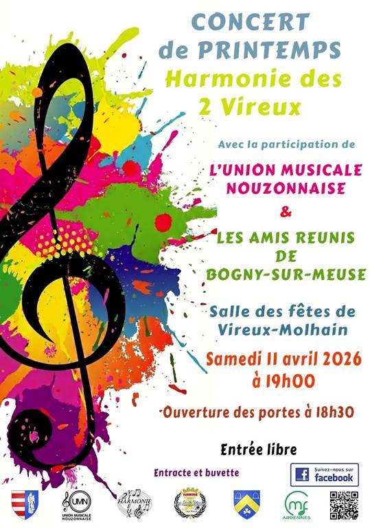Célébrons le printemps en musique, le samedi 11 avril 2026 à la Salle des Fêtes de Vireux-Molhain.