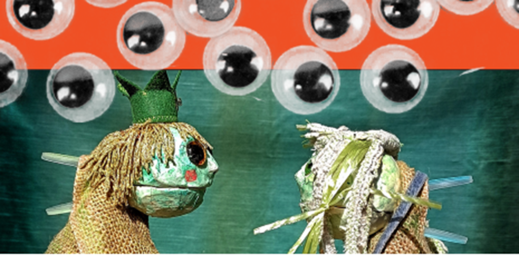 Marie des Grenouilles, écrit pat Jean-Claude Grumberg, c’est une histoire simple, des personnages loufoques, quelques tours de magie, deux êtres qui s’aiment, des méchants et des gentils, une fée qui apparait quand on l’appelle, des grenouilles de toutes les couleurs… tout ça pour raconter la recherche d’un monde meilleur.